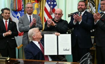 Trump firma orden ejecutiva sobre drogas psicodélicas con Joe Rogan El podcaster Joe Rogan se unió al presidente Trump en la Oficina Oval mientras firmaba una orden ejecutiva diseñada para …